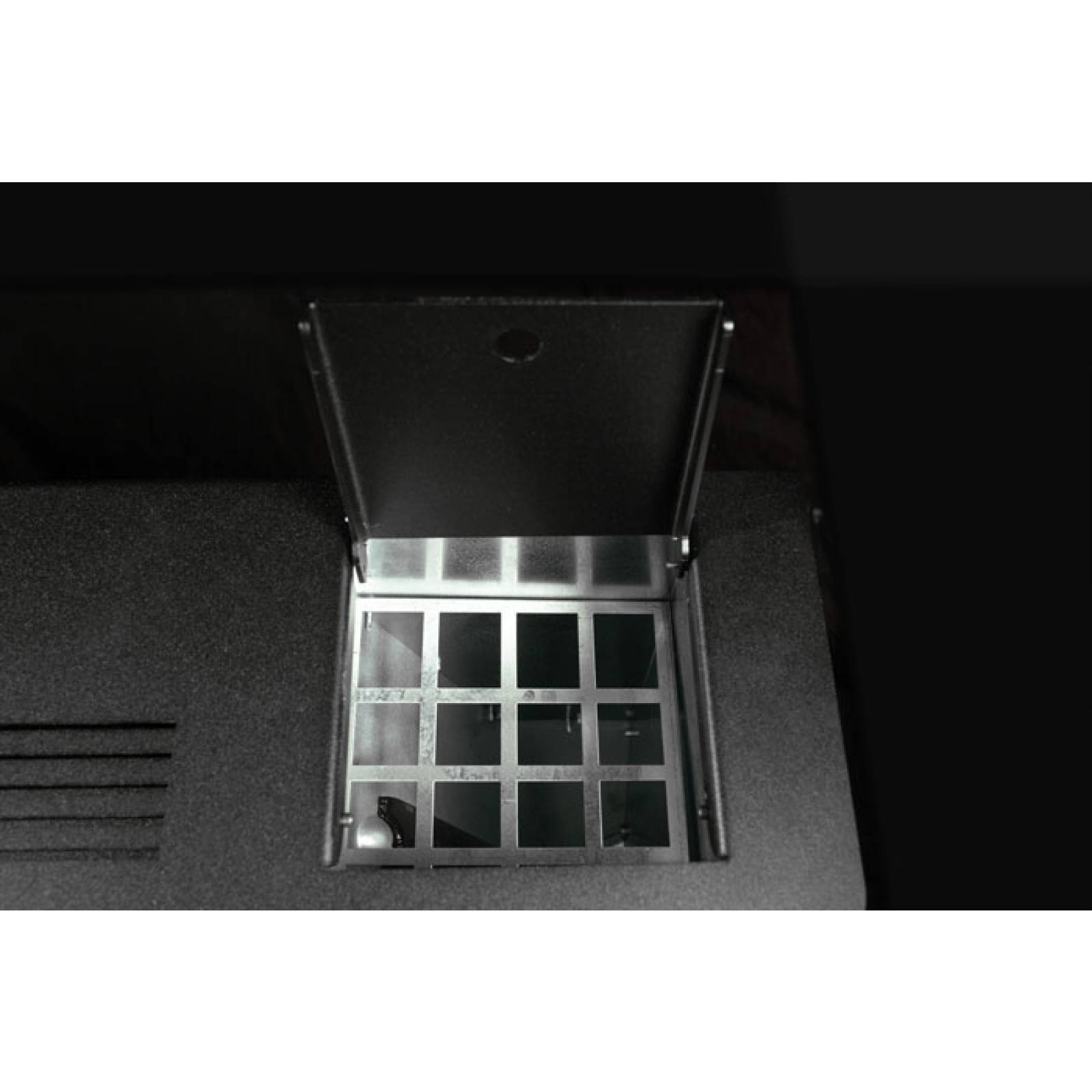Litinový popelník – tlumí dopad pelet → tichý chod, dlouhá životnost, snadné čištění